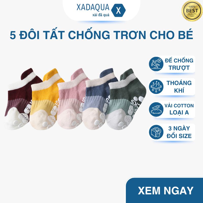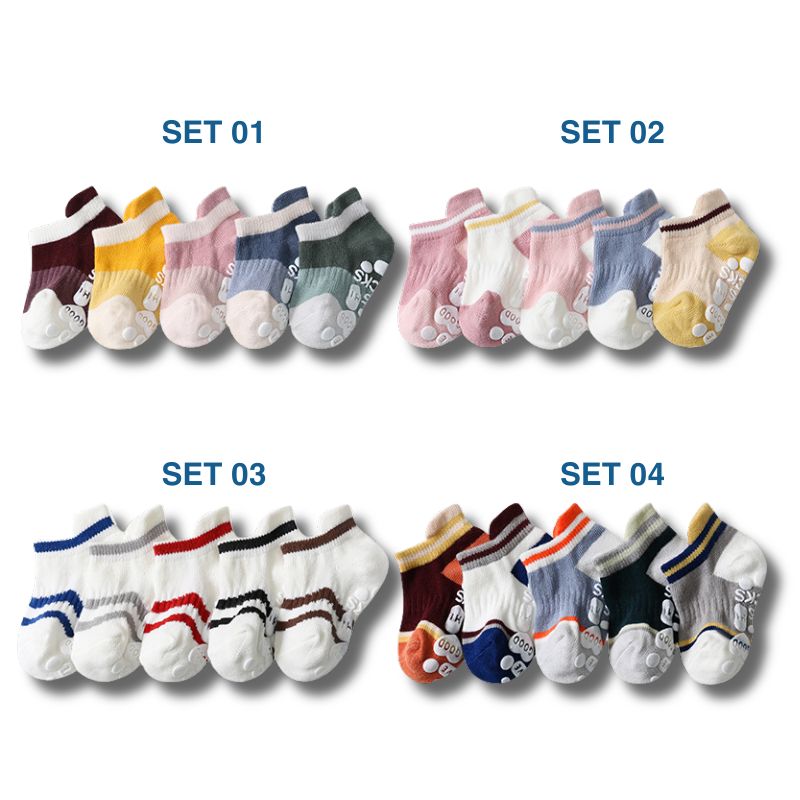 5 Đôi Tất Chống Trơn Cho Bé Trai Bé Gái Sơ Sinh Vải Cotton Thoáng Khí Siêu Xinh